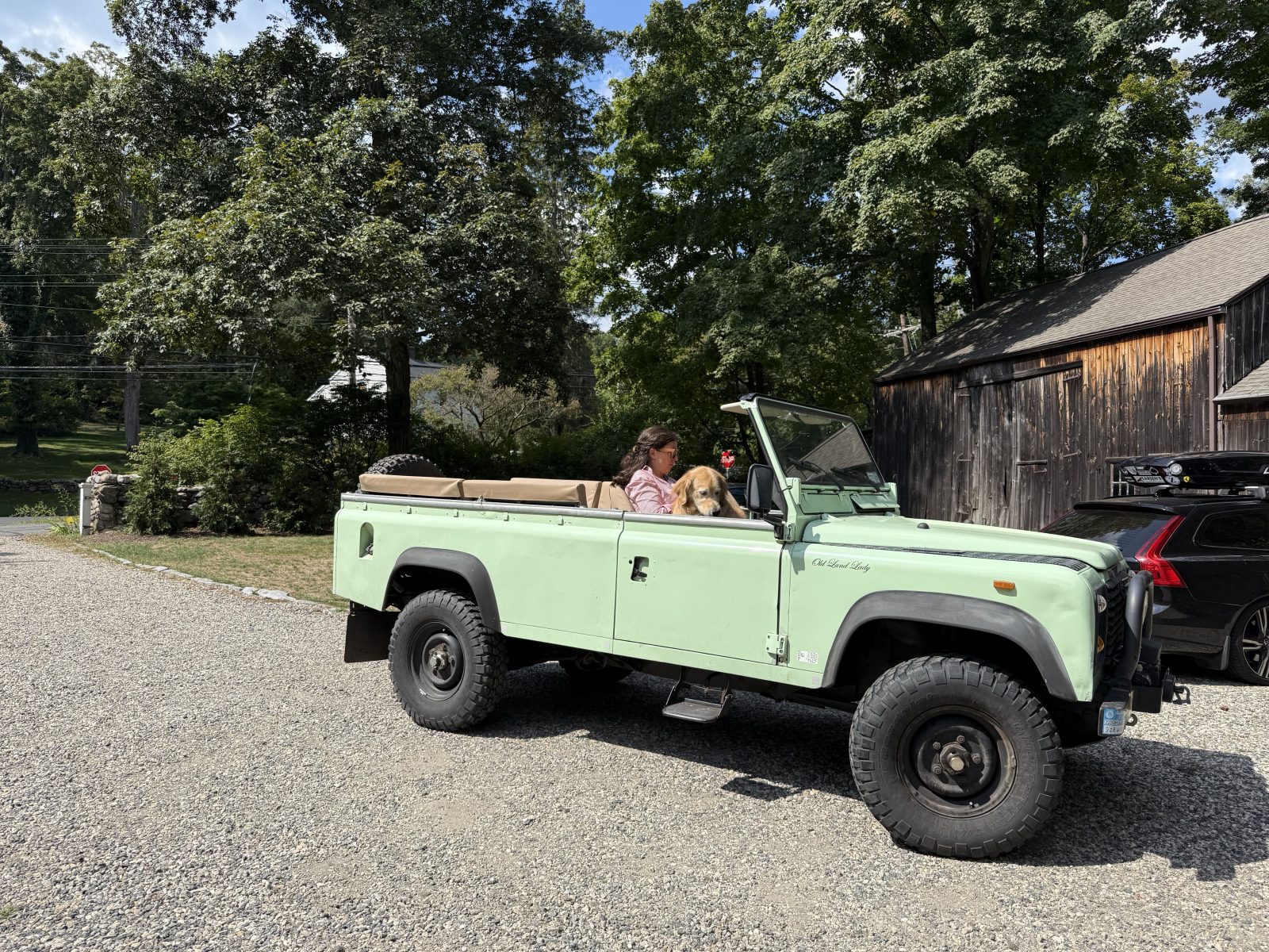 The 110 is a real crowd pleaser. Very happy, fun color. Fully a beach or safari mobile. Seatbelts for 11 people. Three across the front, eight facing each other on benches in the back.