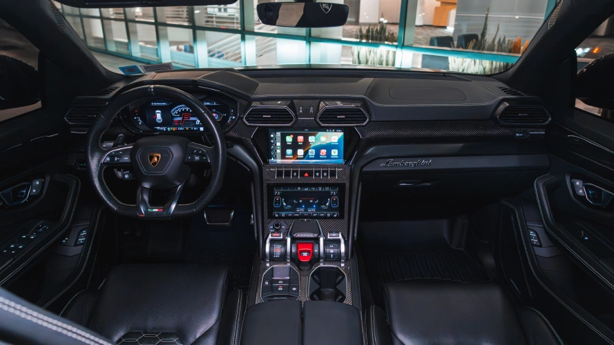 Clad in Verde Scandal exterior paint and adorned with a sleek black interior featuring exquisite white stitching and Alcantara accents, this SUV epitomizes elegance and performance. Behind the wheel, the Urus delivers an exhilarating driving experience, effortlessly combining the agility of a sports car with the versatility of an SUV. Its 4.0-liter twin-turbo V8 engine roars to life, unleashing 641 horsepower and propelling you from 0 to 60 mph in a mere 3.6 seconds.