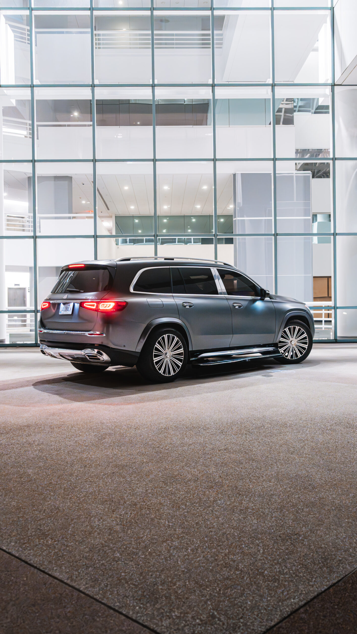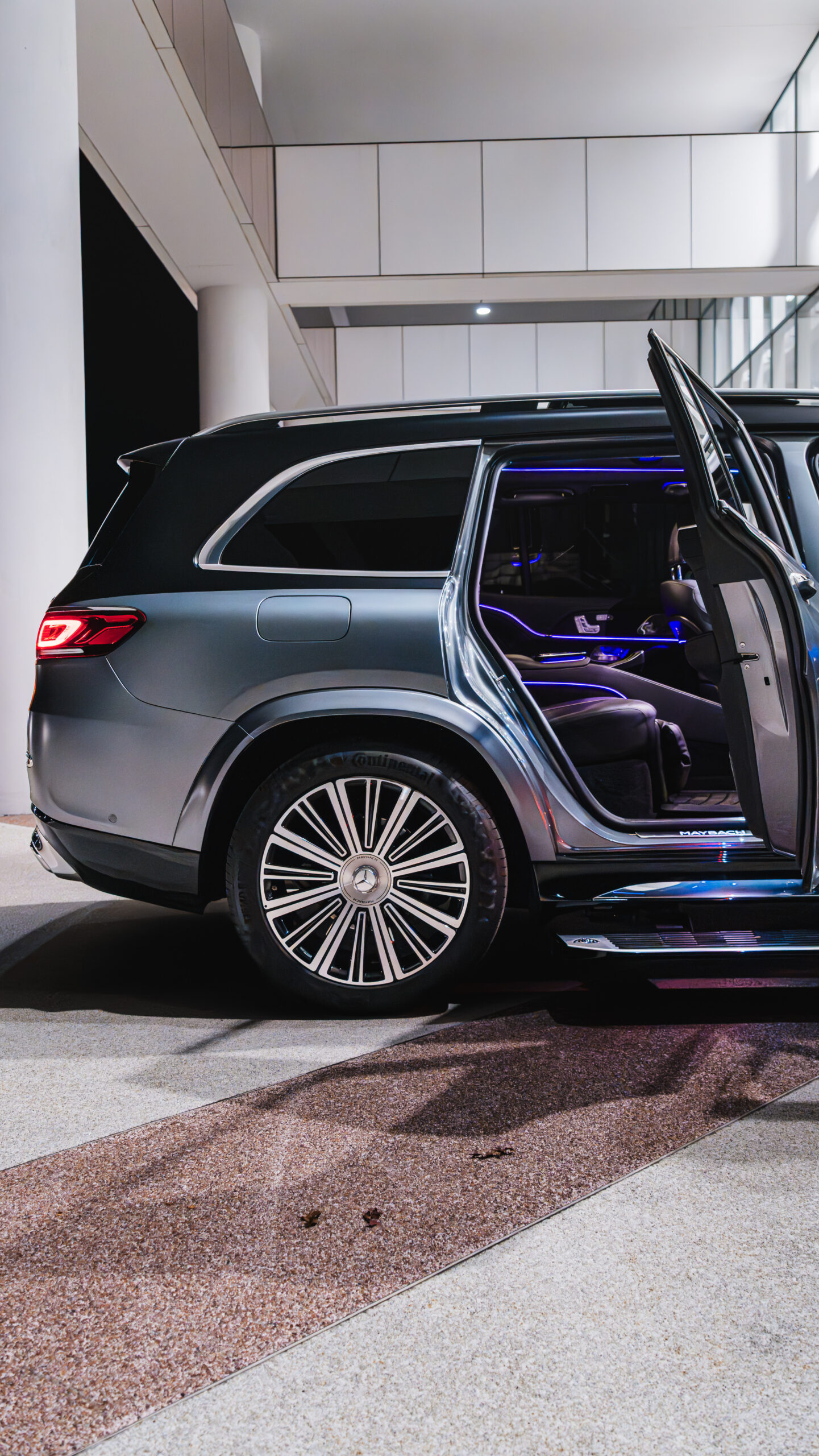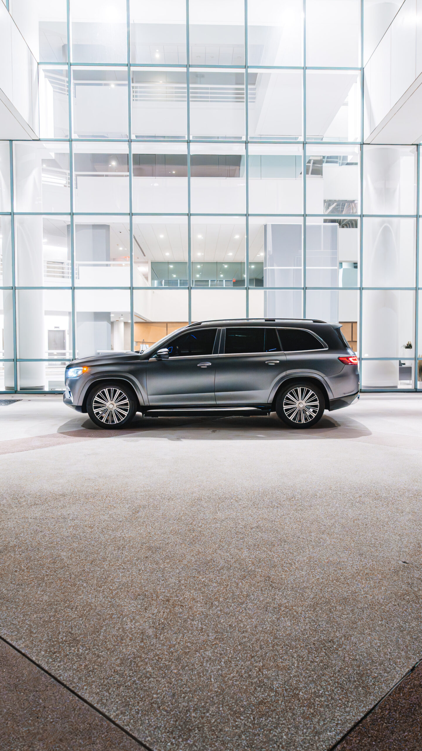 Finished in a distinctive two-tone Satin Grey exterior with a subtle bluish tint, and complemented by a luxurious Black interior, this Maybach GLS embodies elegance and comfort, all within a sleek design tailored for any occasion.
