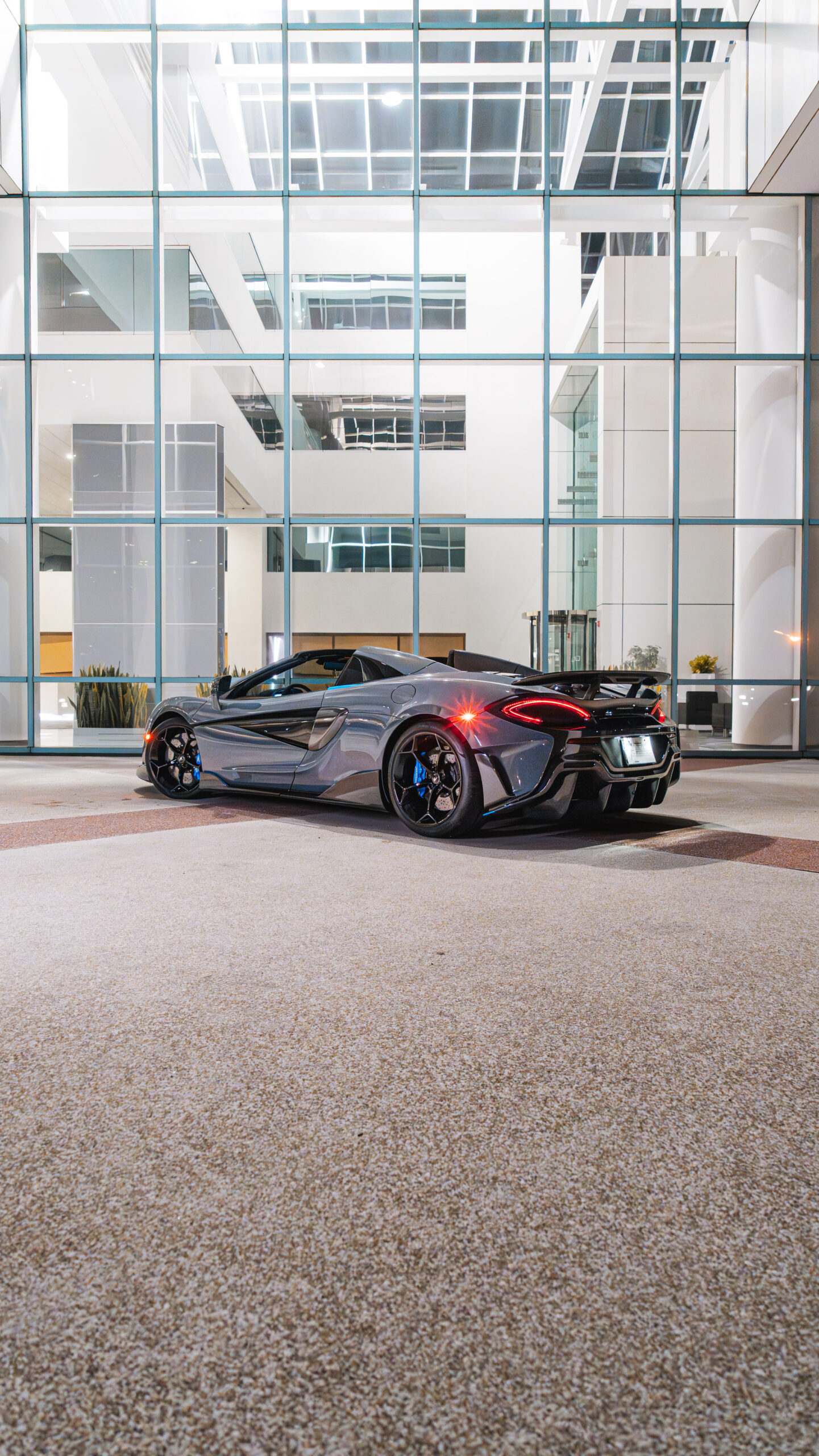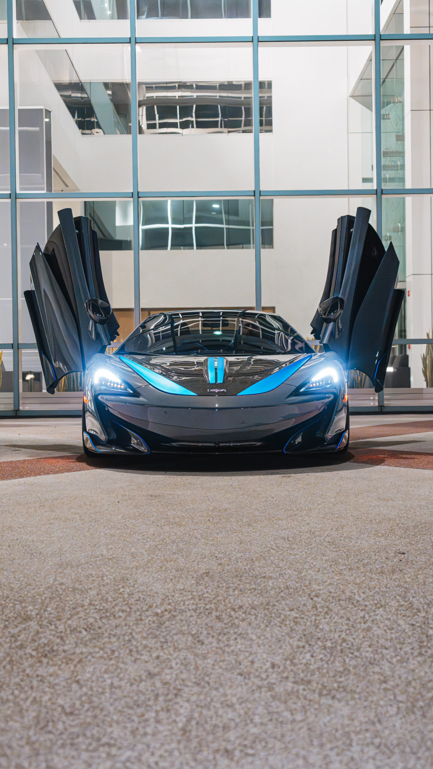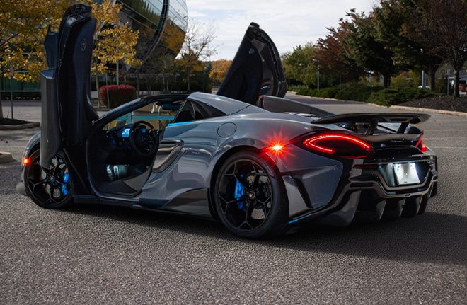 McLaren 600LT Spider in Nardo grey with blue accents