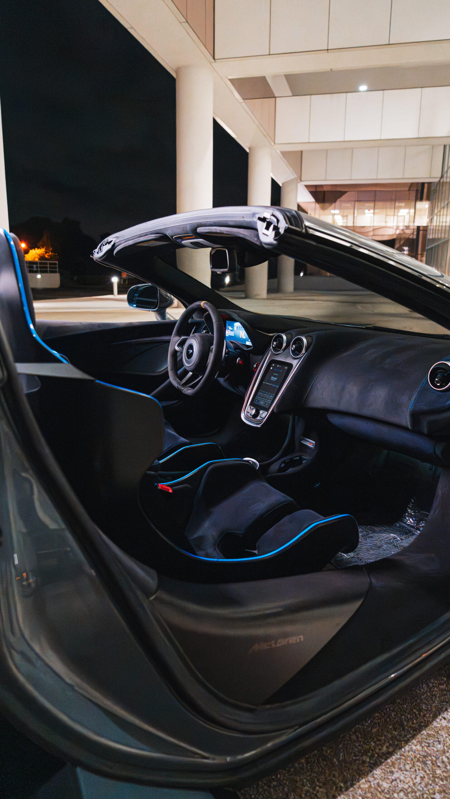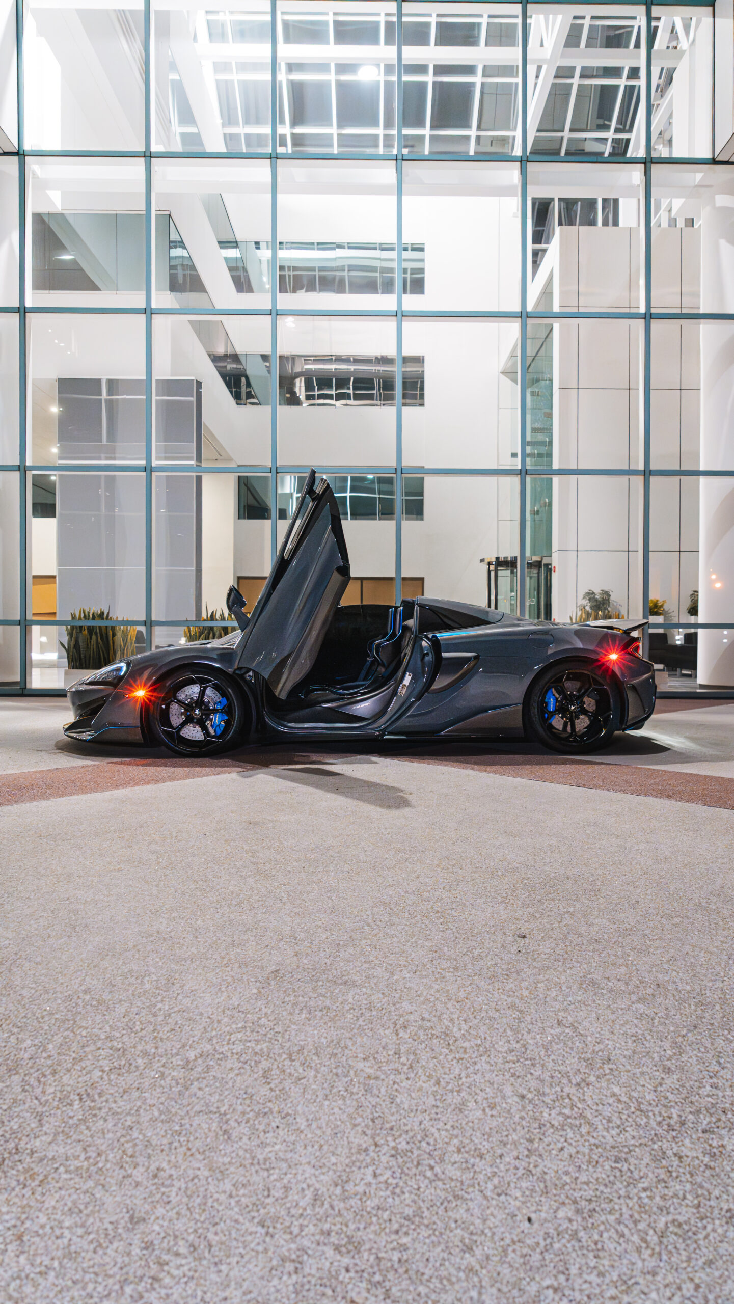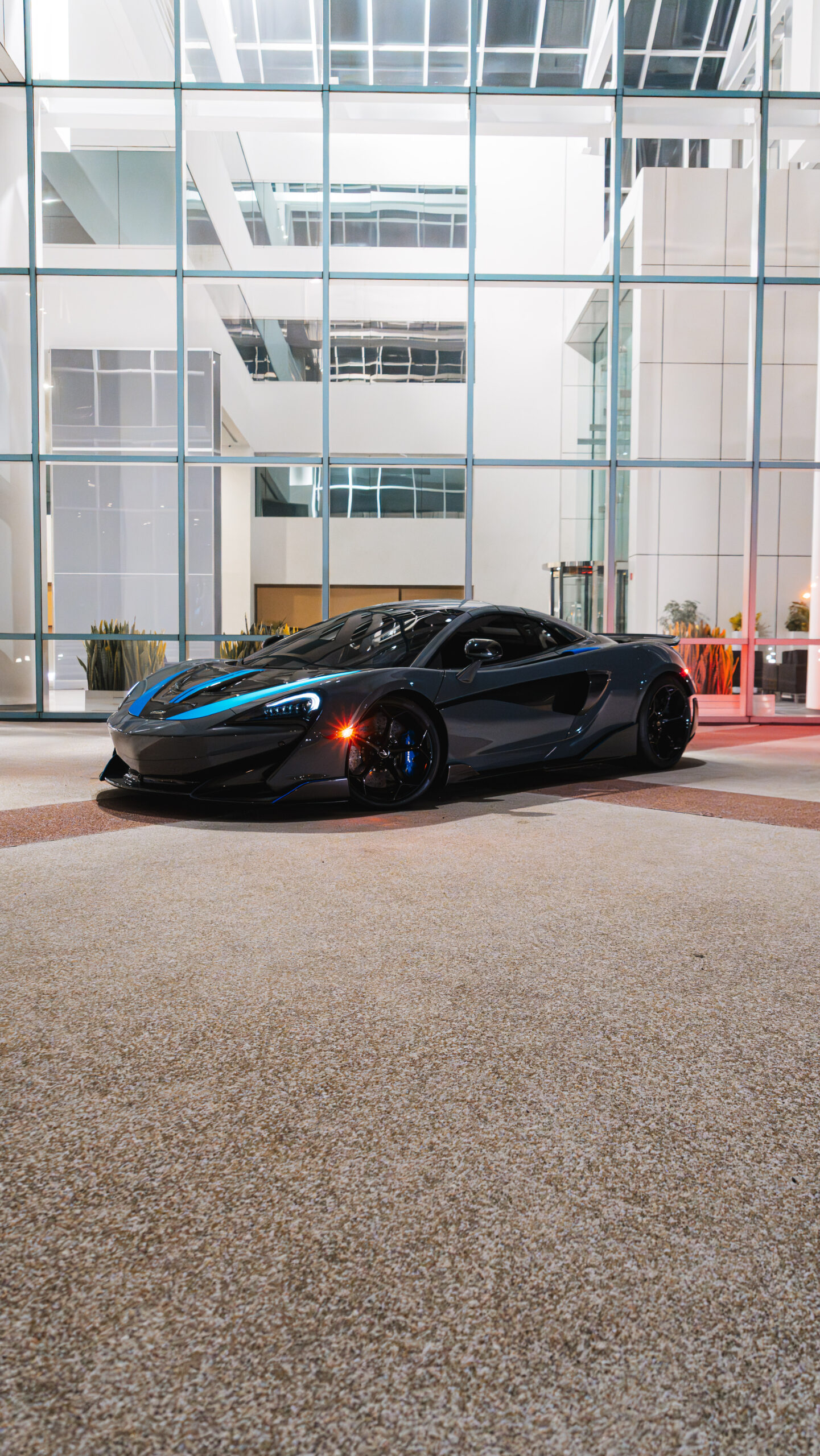 McLaren 600LT Spider in Nardo grey with blue accents